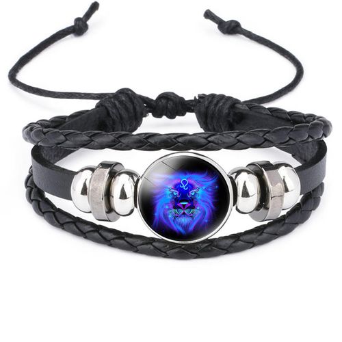 Astrology Lucky Charm - Leather Cord - Glow-in-the-Dark Zodiac Braided Bracelet - Glow-in-the-Dark Astrology