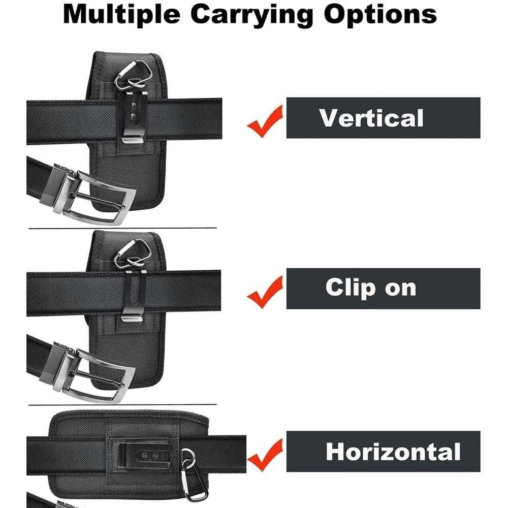 Men's Double-Layer Waist Bag Oxford Nylon Fabric with Light Water Resistance Leather Phone Pouch