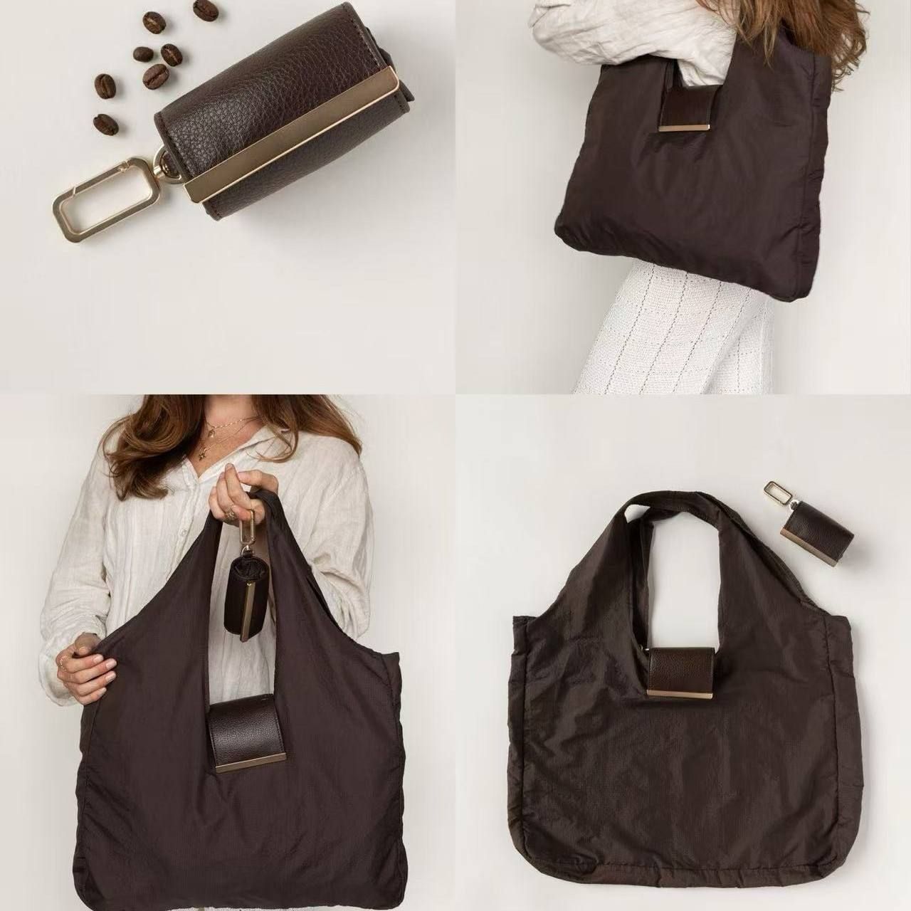 Eco-Friendly Portable Vintage-Style Oversized Foldable Shopping Shoulder Bag with Keyring Charm and Single Handle Design