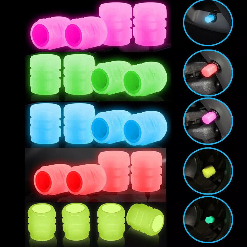 Luminous Valve Caps Fluorescent Green & Blue Night Glow Car, Motorcycle, Bicycle Wheel Styling Tyre Hub Luminous Cap Decor